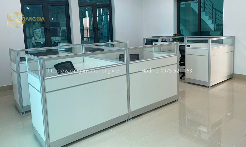 Sản xuất và lắp đặt các mẫu vách ngăn văn phòng, vách quây bàn làm việc cho nhân viên chất liệu gỗ MFC khung nhôm định hình cao cấp.
