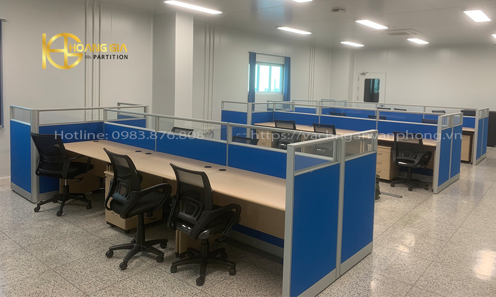 - Đa dạng mẫu mã, màu sắc, kích thước vách ngăn theo yêu cầu thiết kế riêng, bao gồm các loại vách ngăn bọc nỉ khung nhôm, vách ngăn gỗ melamine khung nhôm, vách ngăn di động…