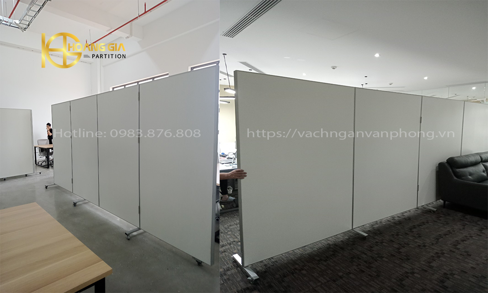 - Thuộc mẫu vách ngăn di động có bánh xe phía dưới di chuyển được, gập gọn khi không sử dụng.