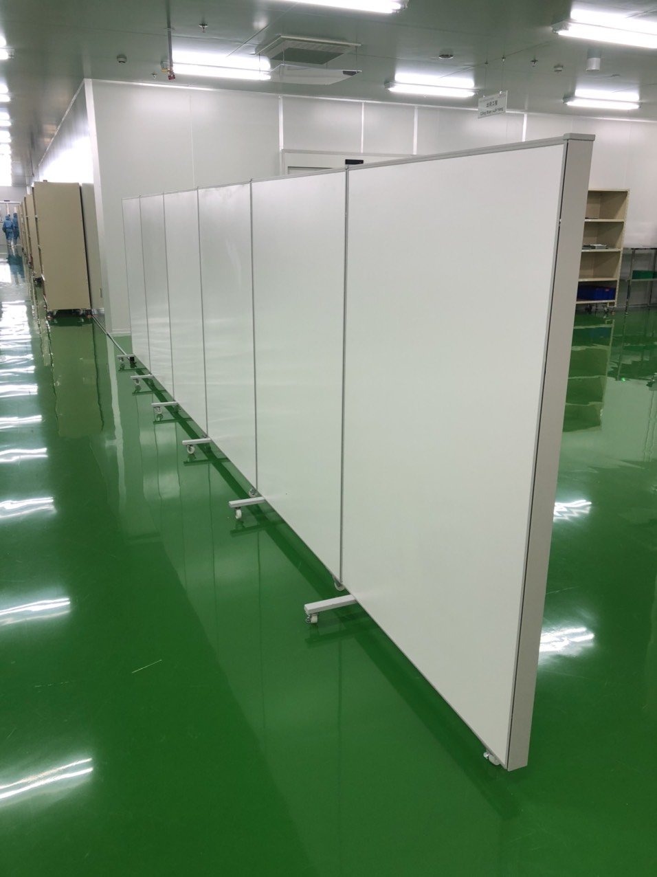 Vách ngăn xếp gọn có bánh xe chân đòn được sử dụng trong việc ngăn chia cơ động khu vực sản xuất trong các nhà máy ở khu công nghiệp, giữa các tấm có bản lề Inox 304 gập gọn khi không sử dụng,