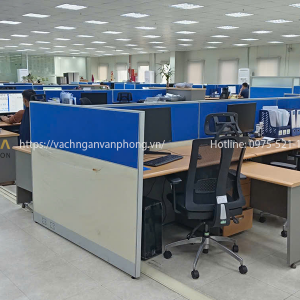 Đa phần các văn phòng trước khi nghiên cứu làm vách ngăn thường đã có sẵn bàn làm việc với kích thước mua từ trước, kiểu văn phòng này chúng ta có thể sử dụng hệ vách ngăn bàn có chiều cao tiêu chuẩn từ 1,1m – 1,2m cao từ đất lên quây xung quanh, bố trí các bàn ngồi thành cụm hay còn gọi là module, bao gồm cụm bàn đôi, cụm 4, cụm 8, cụm 10, 12. Nên sử dụng vách nỉ hoặc vách gỗ khung nhôm lắp ghép, loại có ô kính hoặc kín toàn bộ tuỳ theo nhu cầu sử dụng.
